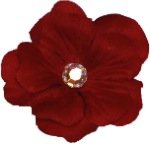 This beautful red flower is stunning. You'll love to have this flower in your hair bow collection. The flower hair bow is attached to a strong ribbon covered alligator pinch clip. The flower measures 2 inches in circumference. A beautiful jewel adorns the center.