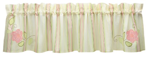 Bananafish love bird window valance by Deena Designs is part of the sophisticated love bird collection. Featuring delicate pink, yellow and brown stripes accented by pink flowers and green leaves, this window accent coordinates with the collection to complete your love bird nursery. Product dimensions: 44'' length x 15'' height with 2'' rod pocket. Other love bird products sold separately: 3 piece crib bedding set, crib mobile, crib bumper.