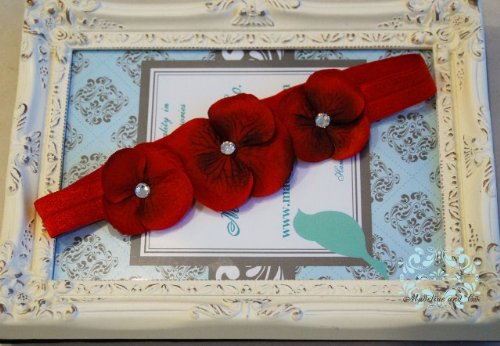- Stunning Red Triple Dainty Flowers adorned with Large Swarovski Crystals Center on Soft, Stretchy Red Headband. Fits Baby up to Young Girl